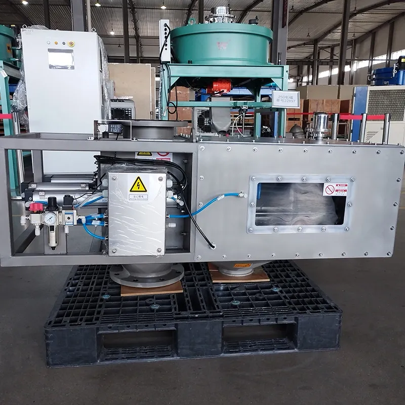 Efficient iron removal can be challenging when dealing with dry powders and granular materials that have poor flowability and a tendency to form bridges. The automatic rotary magnetic separator, developed with proprietary technology, is designed to address these issues by ensuring continuous separation of ferrous impurities while preventing material blockages. The rotary mechanism keeps materials in motion, increasing contact with the magnetic field and improving impurity capture efficiency. Integrating this system into production lines helps reduce labor costs, minimize safety risks, and enhance production efficiency. Its automated operation ensures stable performance and uninterrupted material flow, making it an ideal solution for industries requiring high-purity processing.