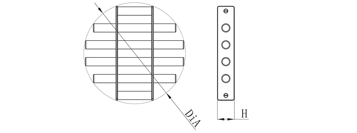 - Standard magnetic grates consist of 25mm-diameter magnetic rods arranged with 50mm center spacing, secured by screws or welding.