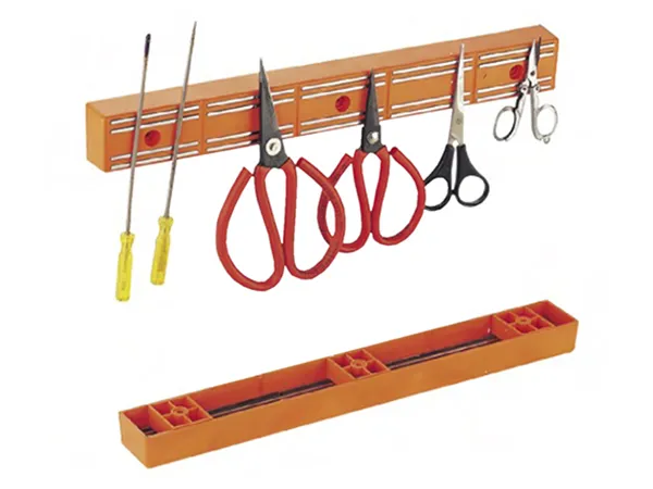 Magnetic tool holders are a practical storage solution for kitchens, auto repair shops, workshops, and storage areas, keeping essential tools within easy reach. Designed to hold knives, screwdrivers, hammers, wrenches, pruning shears, and other ferrous tools, these strips use a combination of plastic, steel, and strong magnets to ensure a firm and secure grip.