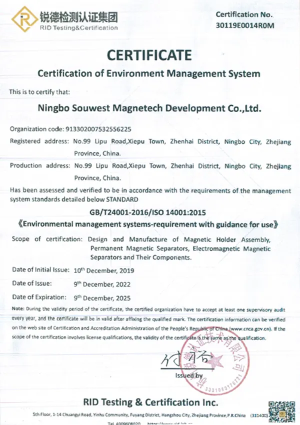 Established as the predecessor of Ningbo Souwest Magnetech.